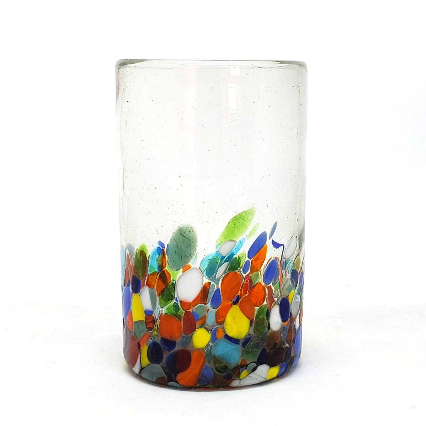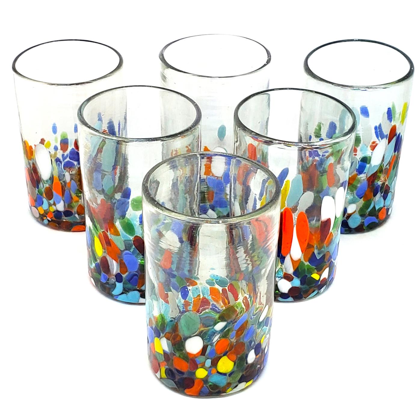 Our Clear & Confetti drinking glasses combine the best of two worlds: clear, thick, sturdy handcrafted glass on top, meets the colorful, festive, confetti bottom! These glasses will sure be a standout in any table setting or as a fabulous gift for your loved ones. Crafted one by one by skilled artisans in Tonala, Mexico, each glass is different from the next making them unique works of art. You'll be amazed at how they make having a simple glass of water a happier experience. Made from eco-friendly recycled glass.