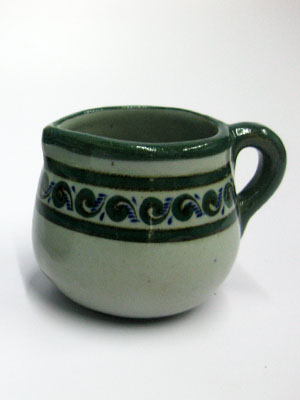 Ideal for a midday coffee or tea with friends, this creamer is adorned with a green and blue paisley pattern, bordered with a green rim.
