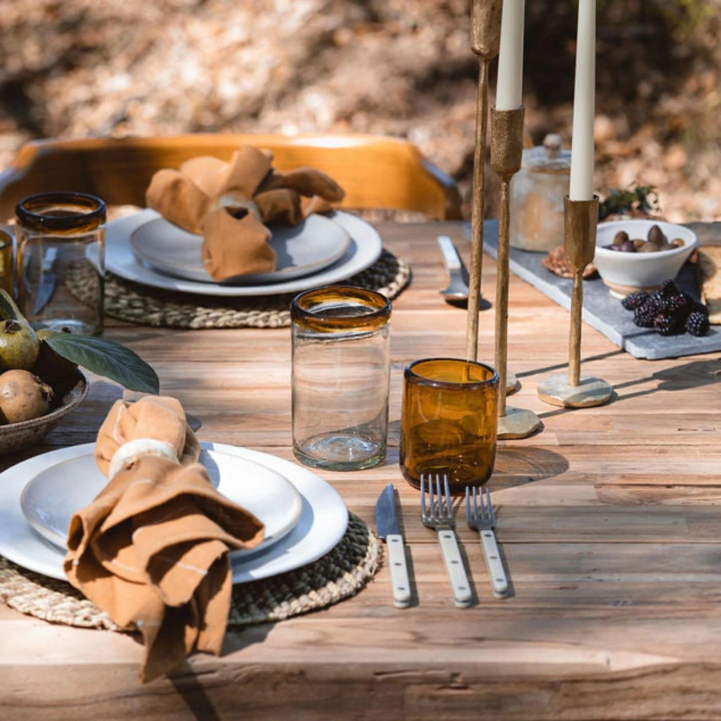Enhance your favorite drink with these colorful handcrafted glasses.