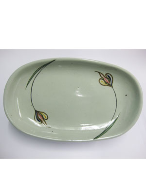 With a very chic design, this serving platter is perfect for fruit display on a table or serving the main dish. It is adorned with a single mutlicolor tulip.