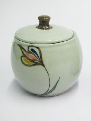 This trendy sugar bowl comes adorned with a handpainted multicolor tulip.