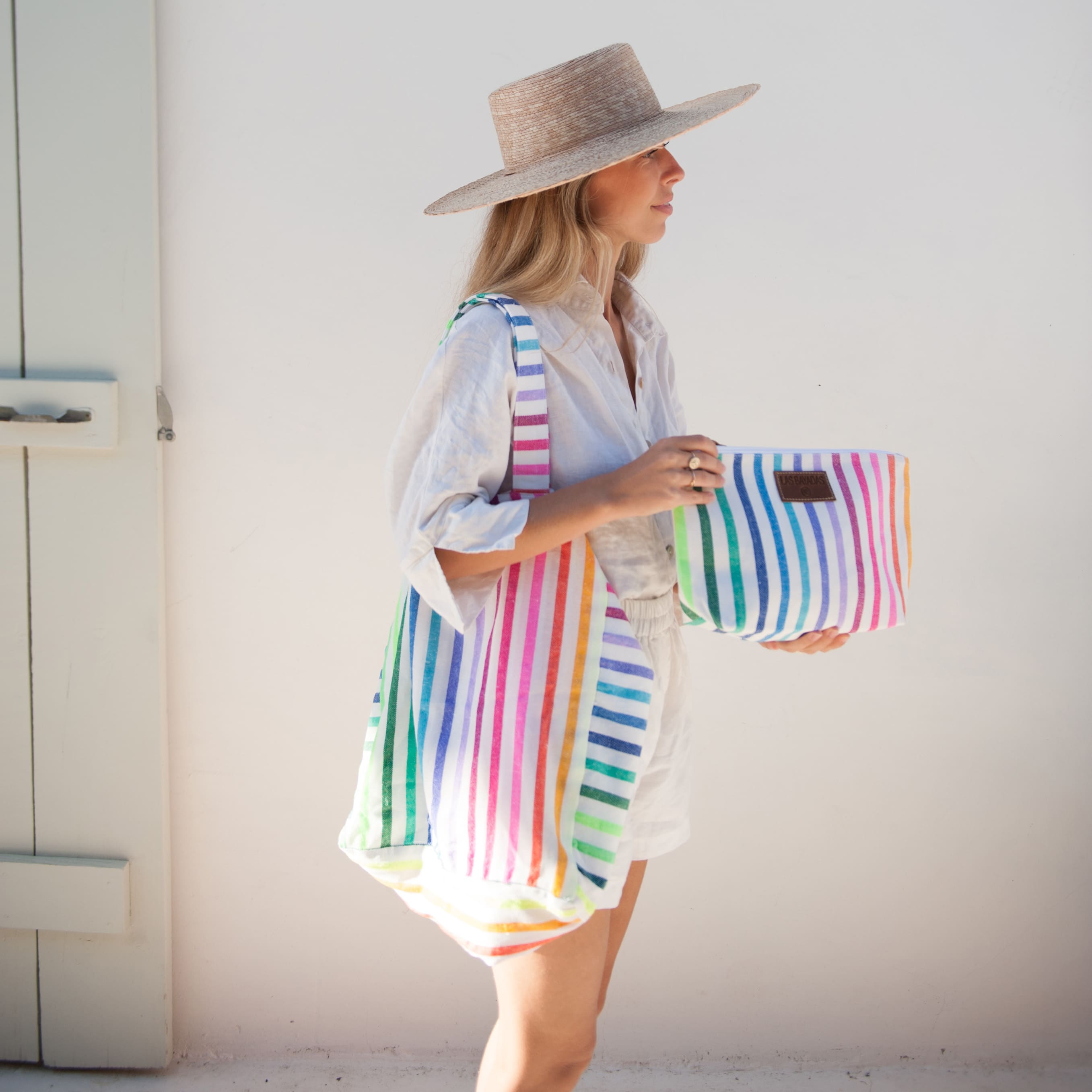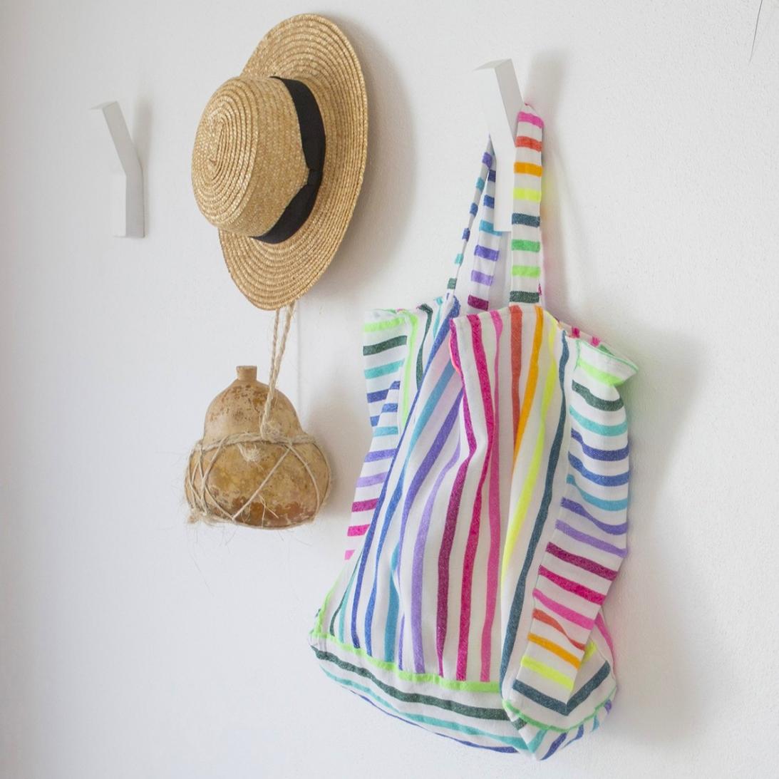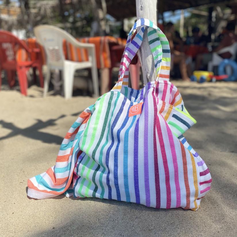 Las Bayadas created the perfect beach bag using the same technique as Las Bayadas beach blankets: big, light, colorful and easy to wash.